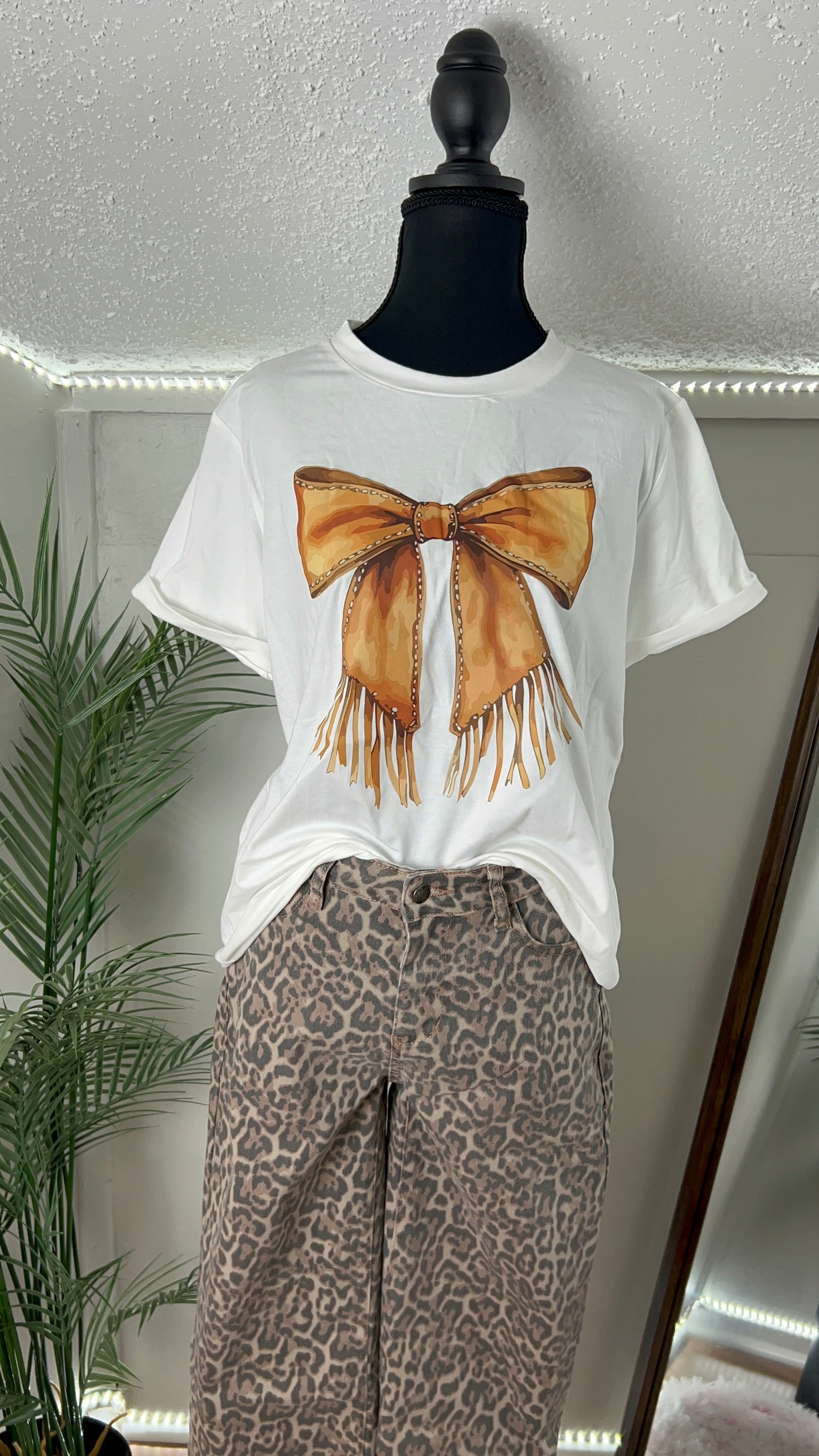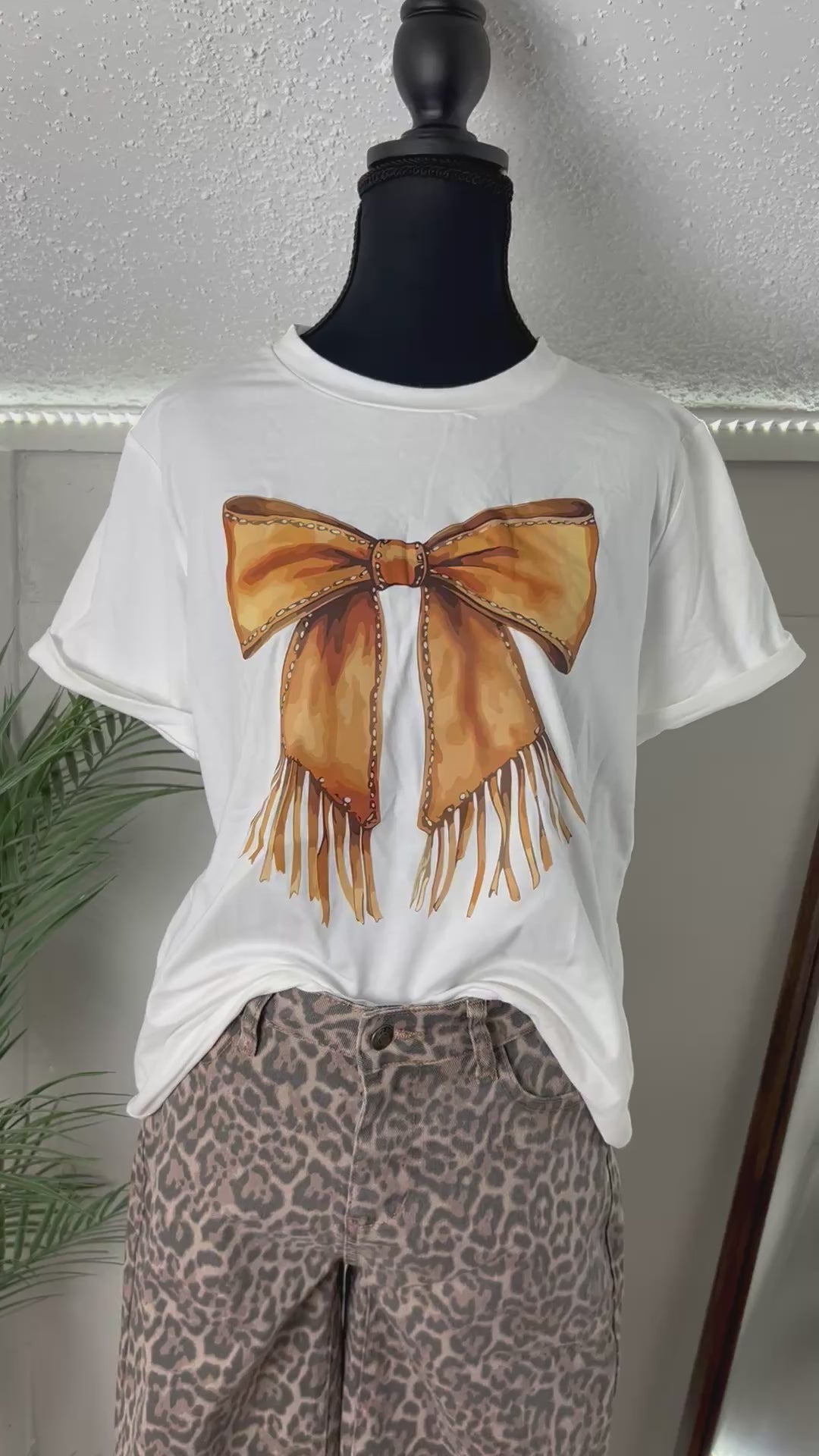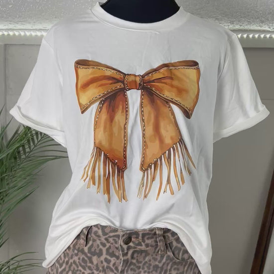 Be a risk-taker and stand out in our Belle bowknot T-shirt! With its bold design and eye-catching bowknot, you'll be sure to make a statement wherever you go. Take on any challenge with confidence and style in this must-have addition to your wardrobe.